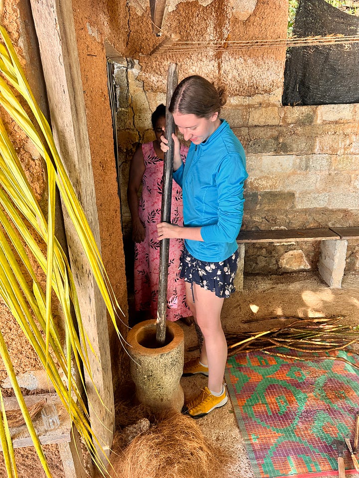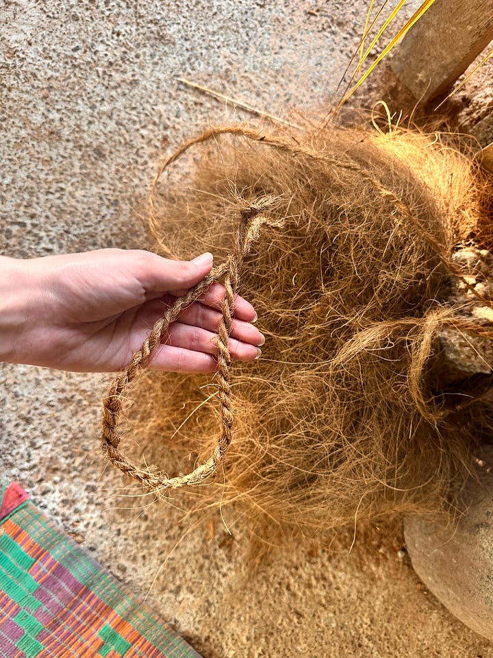 Dort zeigte uns eine liebe Frau, wie man Zimt aus den Ästen und Blättern herstellt und aus der Kokosnuss ein festes Seil flechtet – es sah wirklich so viel einfacher aus, wenn sie es tat, doch sie hatte viel Erfahrung und lachte mit uns.