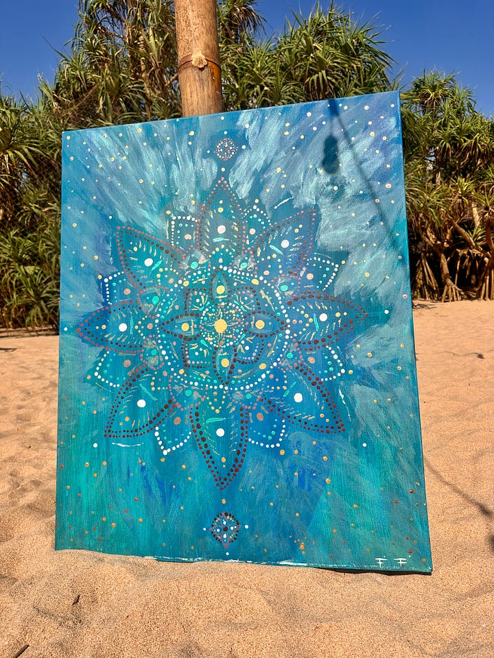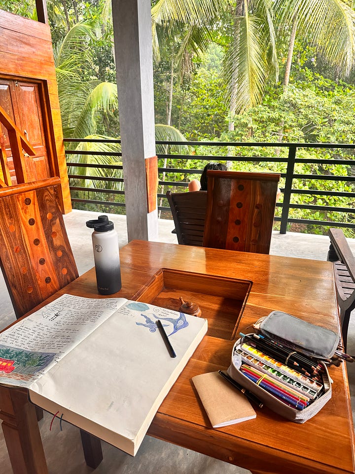 Als ich erzählte, dass ich Künstlerin bin, kamen wir auch auf die Idee, dass ich die Außenfassade des Bootes bemalen könnte. Da es ein großes Projekt ist, sind wir am Überlegen, in ein paar Monaten nochmal nach Sri Lanka zu gehen. 🌿