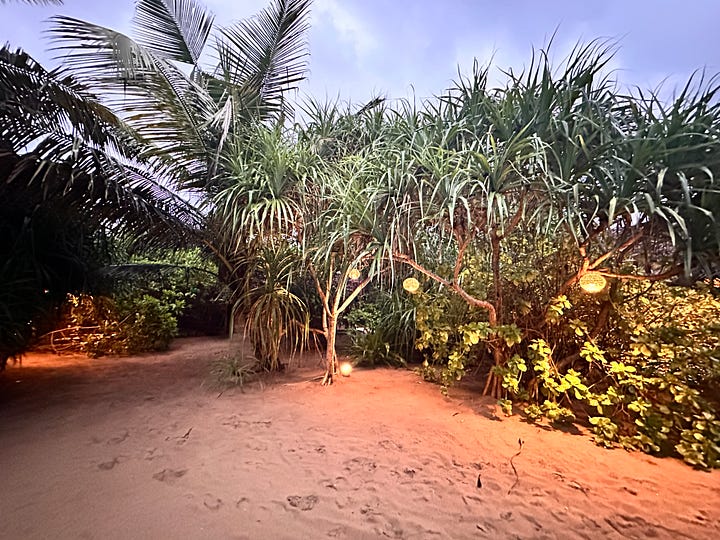Angekommen in unserer neuen Unterkunft, dem Jungle Beach Resort, waren wir total begeistert. 🌅✨ Wir befanden uns direkt am Strand. Das Hotel besteht nicht wirklich aus Böden, Wänden und Decken – zumindest nicht im Sinne, wie wir es kennen. Der Flur ist der weiche Sand, die Wände die Palmen, die zwischen Ruhebereich, Restaurant, Bar und Volleyballfeld stehen – und, ihr erratet es schon: die Decke ist das Himmelszelt. 🌴✨