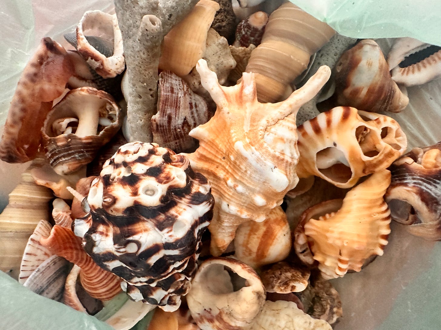 Ich begann, Muscheln zu sammeln, und als meine Hände voll wurden, gab mir ein alter Mann ein Säckchen, um weiter sammeln zu können. Er sammelte dann auch ein paar Muscheln. Während ich Ausschau hielt, um eine Muschel zu schnappen, nahm er mit seinen Händen so viel hoch, wie er zu fassen bekommen konnte, suchte sich dann welche heraus – und warf sie alle wieder zurück ins Wasser.
