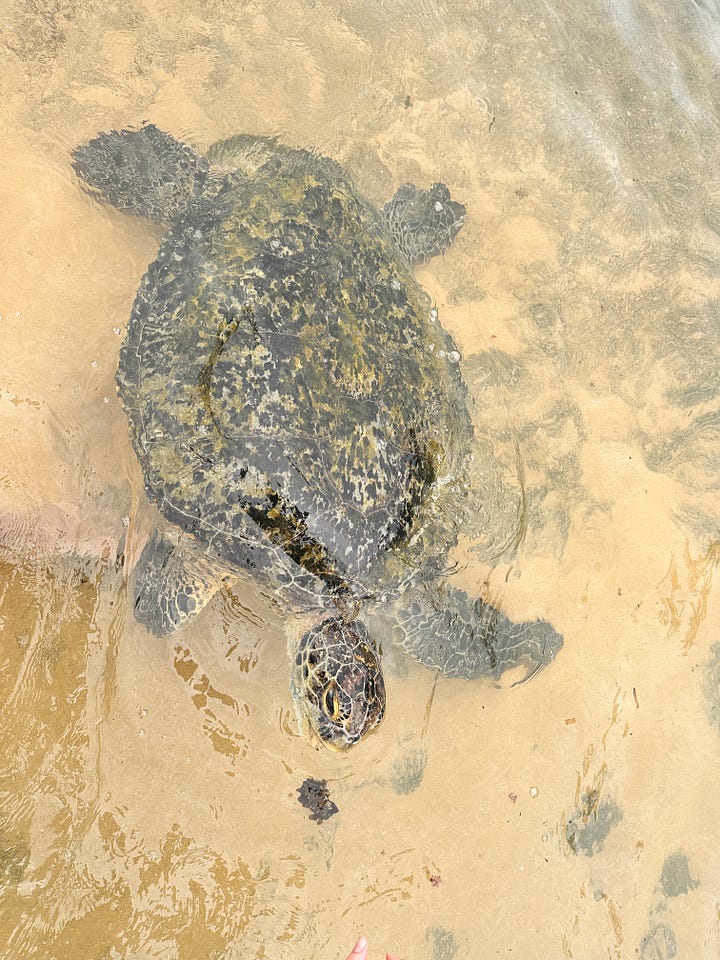 Wir machten uns dann auf den Weg in die Stadt, um für die nächsten drei Tage ein Gym zu finden. Nach dem Training gingen wir zum Strand. Wir entdeckten, dass an der Küste Dutzende Schildkröten im Wasser schwammen. Wir gingen ins Wasser, und es war unglaublich, wie groß diese werden können und welch wunderschöne Muster sie auf ihrem Panzer tragen. 🐢 Einige Meter weiter vom Ufer sahen wir dann auch Babyhaie.🦈