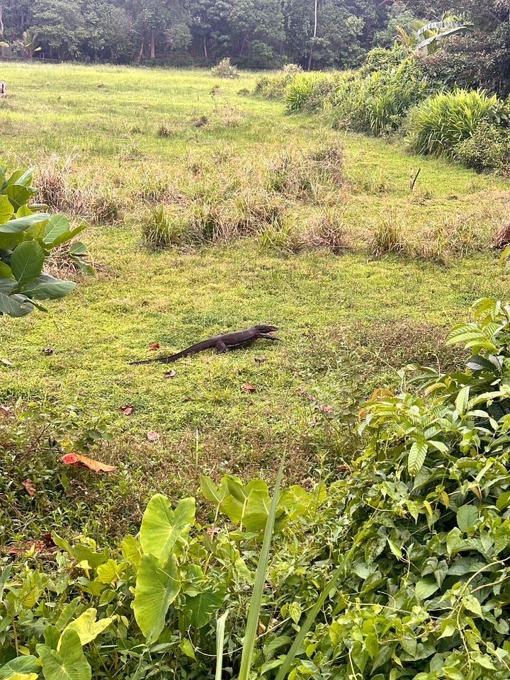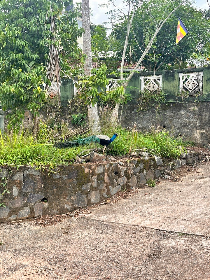 Wir erkundeten dann etwas das Dorf. Nach circa zehn Minuten Spaziergang brachte uns die erstaunliche Tierwelt Sri Lankas schon zum Staunen. Wir sahen eine Wiese mit ein paar Kühen; inmitten dieser sahen wir einen Pfau. Dieser lief herum, als wir etwas im Gebüsch neben uns sahen – ein riesiger Waran. Er lief dem Pfau nach, welcher dann aber wegflog. 🦚 Später erfuhren wir, dass es sich hier um einen Water Monitor handelt, der auch gefährlich werden kann, da er mit seinem Schwanz stark zuschlagen kann und tiefe Wunden verursachen kann. 🦎