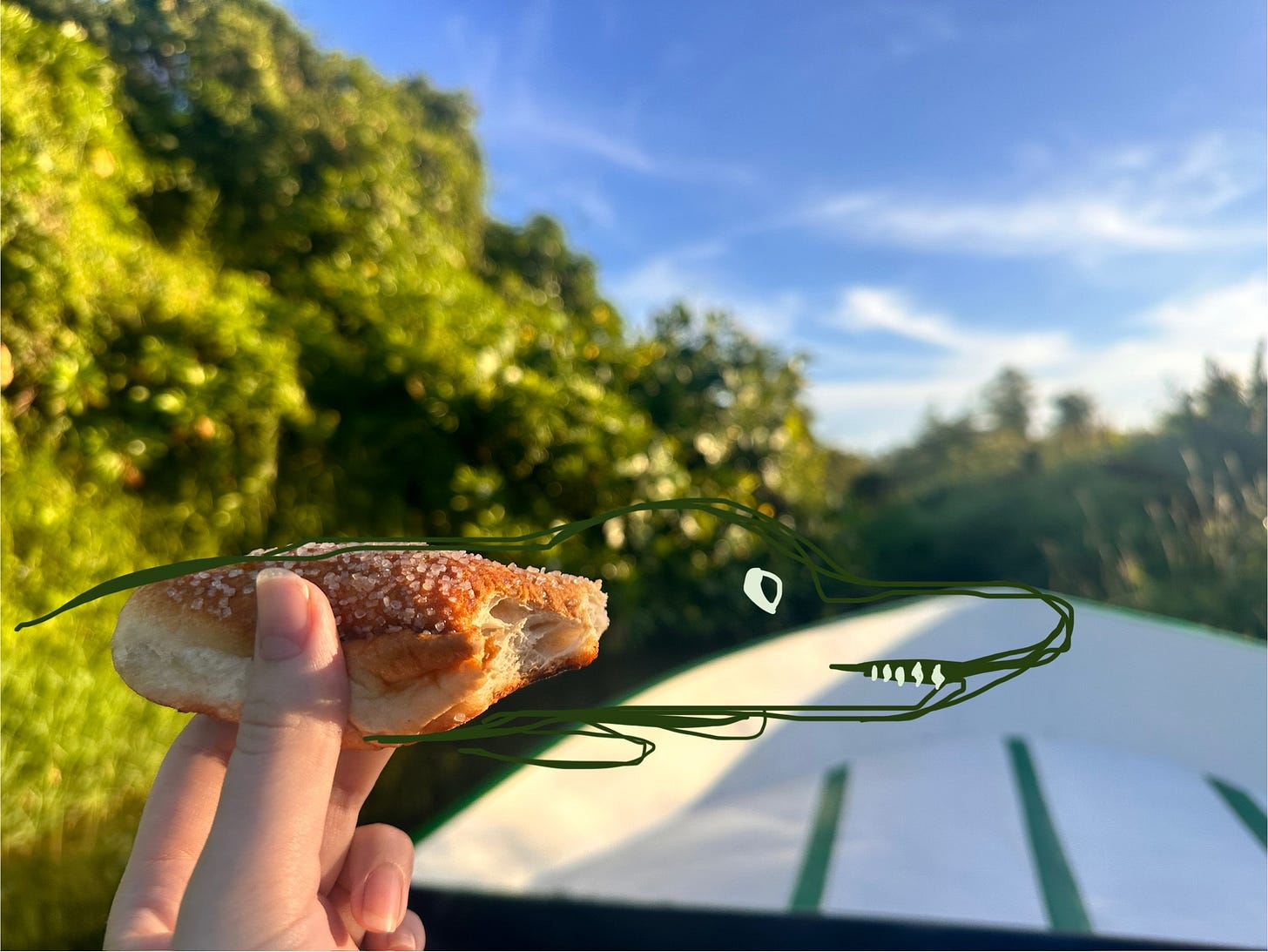 Um 5:00 Uhr morgens ging’s los – hinaus aufs Wasser für eine Bootstour, rechtzeitig zum Sonnenaufgang. 🌅 Das war eine der schönsten Bootstouren, die ich je gemacht habe. In mir breitete sich eine große Ruhe aus, als ich die Weite und die ruhige See erblickte und die verschiedenen Inseln, die von eben diesem Wasser getrennt werden. Wir kamen genau rechtzeitig zum Sonnenaufgang – eine Kulisse, die ich nicht beschreiben kann.