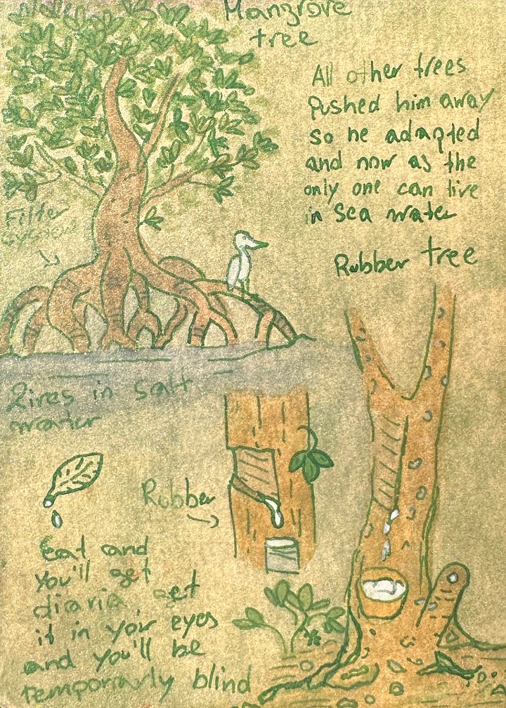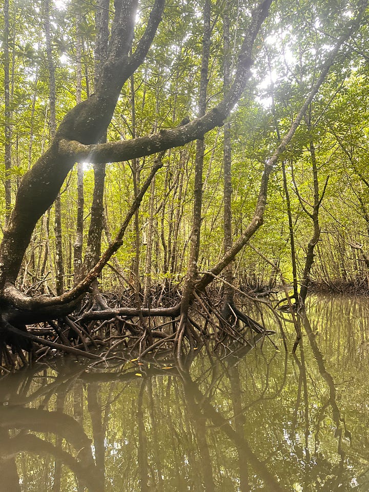 Wusstest du, dass die Mangrovenbäume die einzigen Bäume sind, die Salzwasser aufnehmen können und damit überleben können? Sie wurden von den anderen Bäumen verdrängt und sind deshalb ins Salzwasser „gewandert“. Durch ihre Wurzeln, die wie ein Filtersystem funktionieren, können sie das Salzwasser verarbeiten und für sich nutzen.