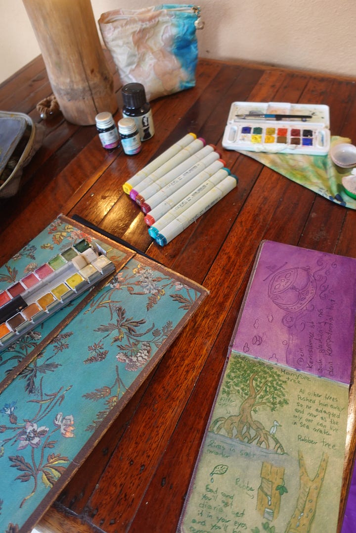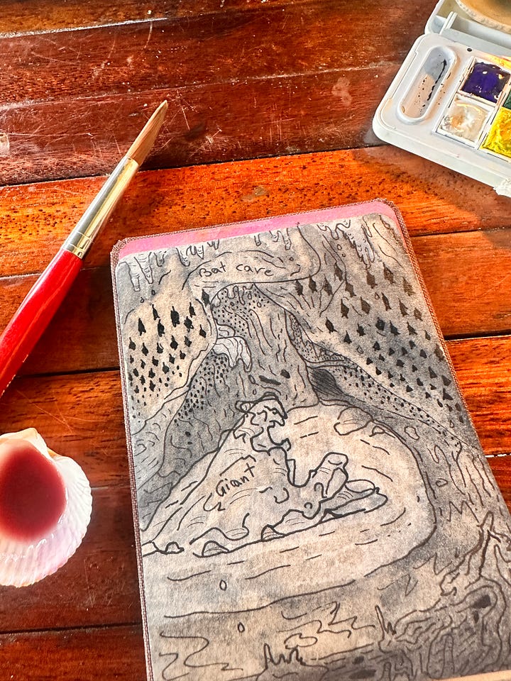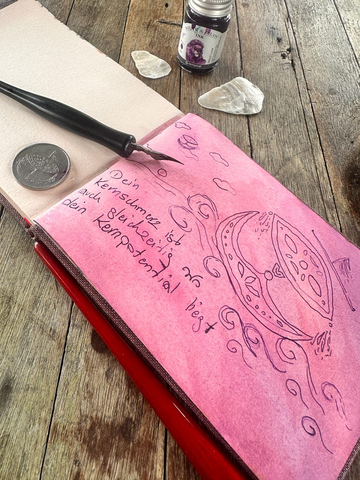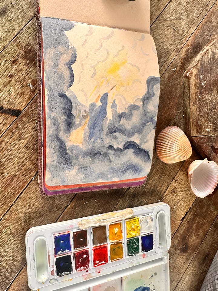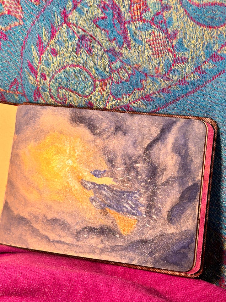 Etwas später zeigte sie mir ein paar Skizzen aus ihrem Tagebuch und darauf waren unglaublich schöne Bilder von Landschaften und Momenten – voller Hingabe, Kraft und Liebe von ihr gemalt.