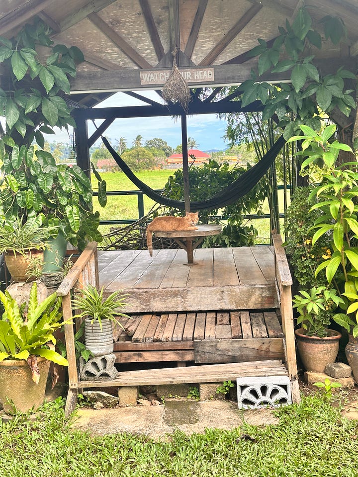 Im Garten selbst stand ein kleines Holzhäuschen – ein ruhiger Rückzugsort mit einer Hängematte. Das war perfekt für mich, damit ich an meinen Projekten und an meinem Visionboard weiterarbeiten konnte. 🔮✨