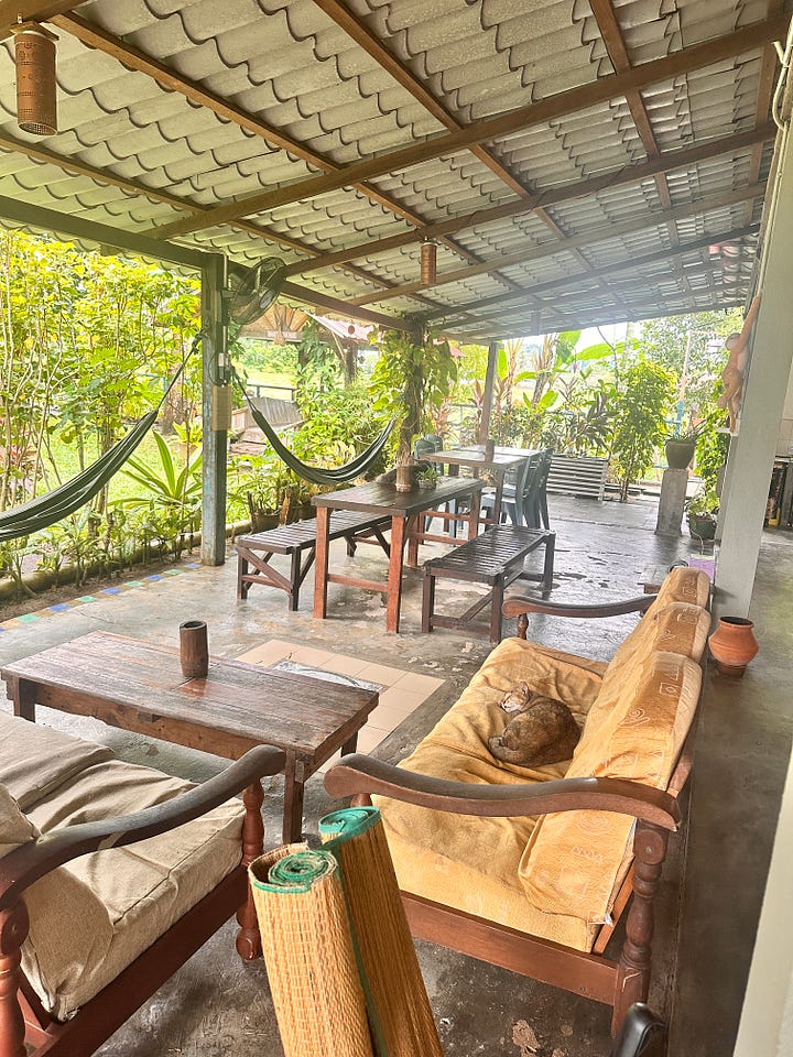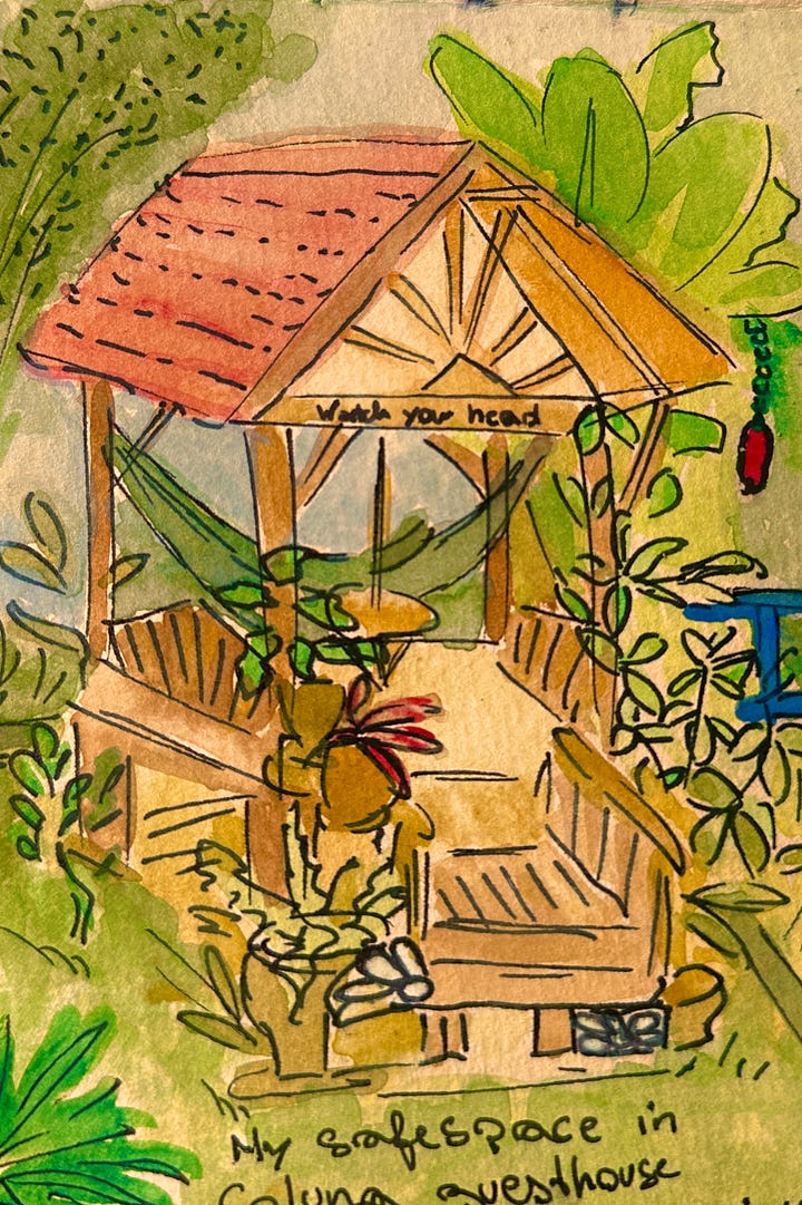 Mir gefiel es so gut darin, denn ich hatte meinen eigenen Safespace, wo ich mich ausdrücken konnte und wo ich meine Ruhe hatte. Gleichzeitig waren rundherum Menschen – entweder chillten sie auf den Hängematten, spielten gemeinsam oder jemand kochte in der Küche auf der Terrasse.