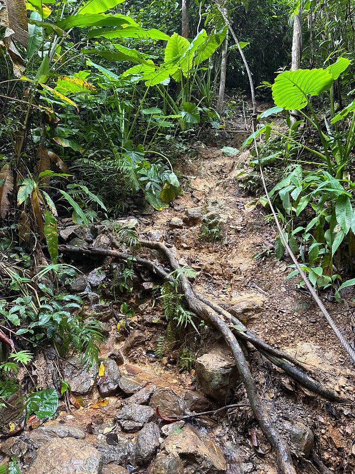 Wir gingen ca. eine Stunde, bis der Weg matschig und steil wurde. Ich entschied mich dann irgendwann, barfuß weiterzugehen – was dann aber zu einigen Schnitten und Spriesen führte.