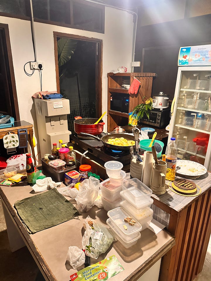 An einem Abend kochte Rasch, unser Houst, für alle im Guesthouse. Den ganzen Tag stand er in der offenen Küche. 🥘 Es schmeckte so gut und wir aßen alle zusammen. & wenn es dich mal nach Langkawi ins Soluna Guesthouse schlägt und Rasch für dich kocht, dann probier unbedingt seinen berühmten Kartoffelsalat.
