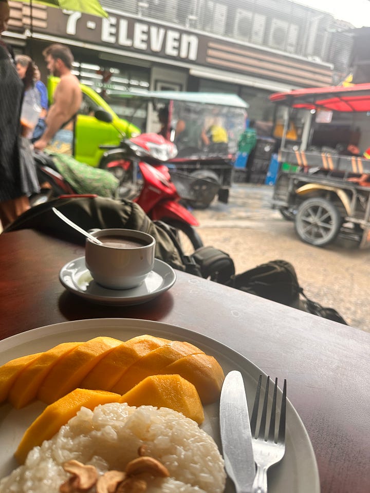 Doch zum Glück konnten wir dann etwas Geld wechseln, fanden dann auch WLAN, damit wir uns ein Hotel buchen konnten – und in einem kleinen Café probierte ich dann meinen ersten Sticky Reis mit Mango. 🍚 🥭