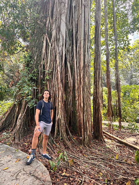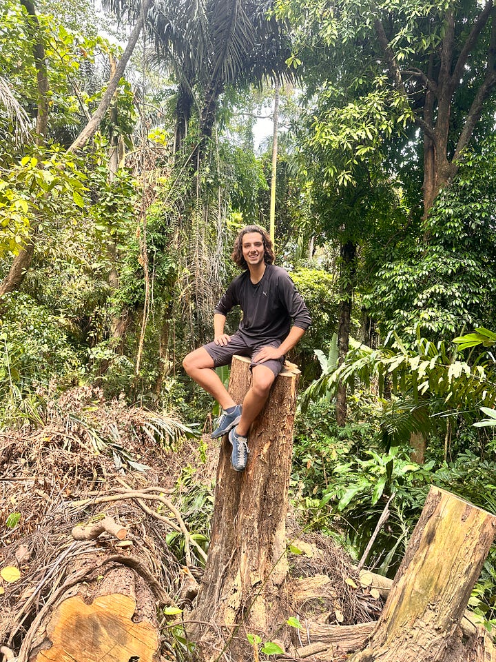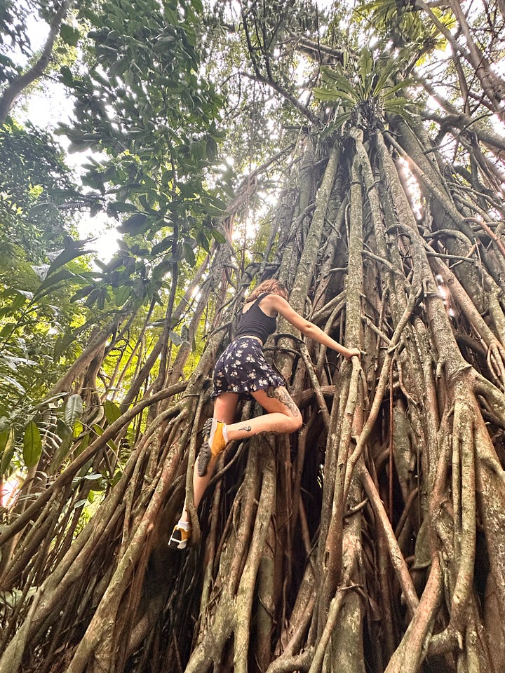 Wir wanderten den ganzen Tag – die Atmosphäre war einfach magisch. ✨ Es gab auch Lianenbäume, auf die ich kletterte – das machte so viel Spaß! Auch wenn ich ausgesetzt im Regenwald wahrscheinlich nicht lange überleben würde, fühlte ich mich in dem Moment eins mit der Natur.