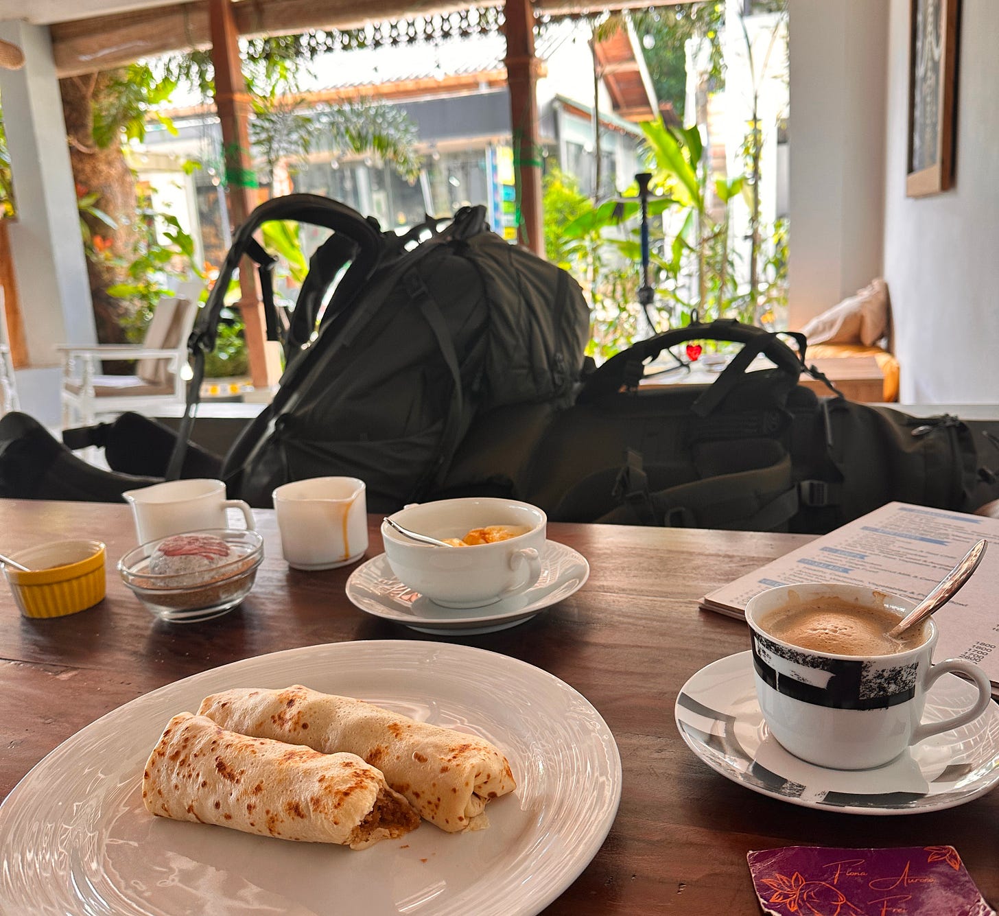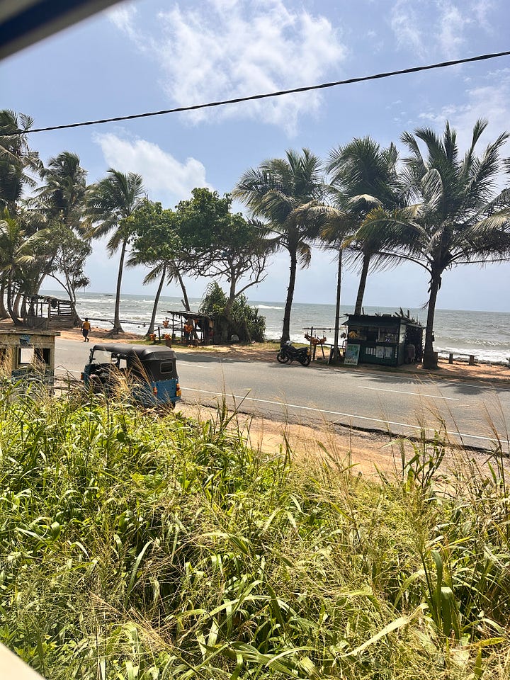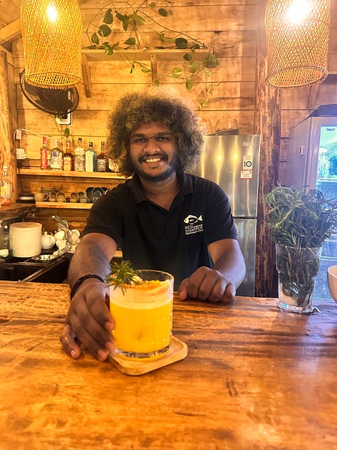 Am nächsten Morgen gingen wir noch einmal dort frühstücken – Kokosnuss-Pancakes und Quark mit Honig. 🥞 Rumnea war leider nicht da, aber ich hinterließ ihr ein kleines Geschenk. Auch Liza kam noch kurz vorbei – sie reiste heute unerwartet ab, ins wunderschöne Jungle Beach Resort in Ahungalla, wo wir selbst zuvor gewesen waren.