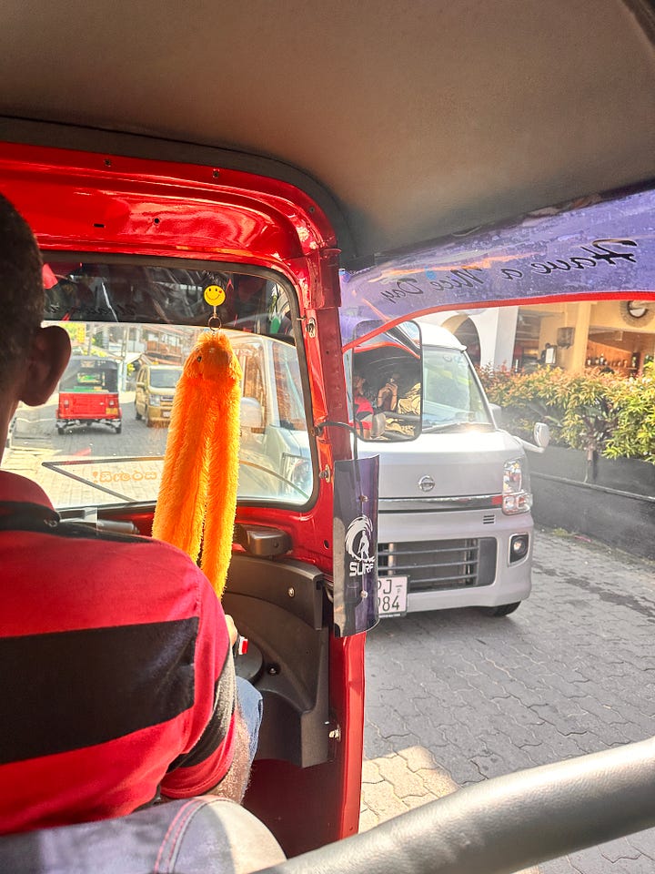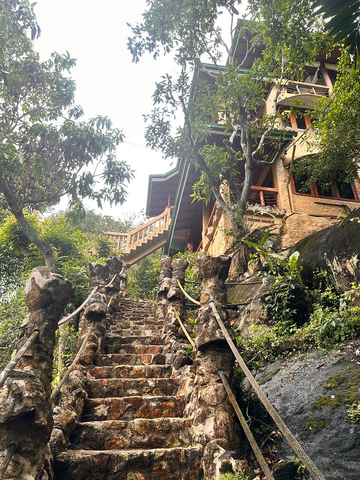 Mit dem Tuktuk fuhren wir zu unserem nächsten Stopp in Sri Lanka - dem kleinen Dörfchen Unawatuna. Mit unseren Rucksäcken machten wir dann einen kleinen Marsch hinauf auf die Felsen, wo unser kleines Penthouse gebaut war - hoch über dem Meer, mit einem wunderschönen Blick auf das Dorf.