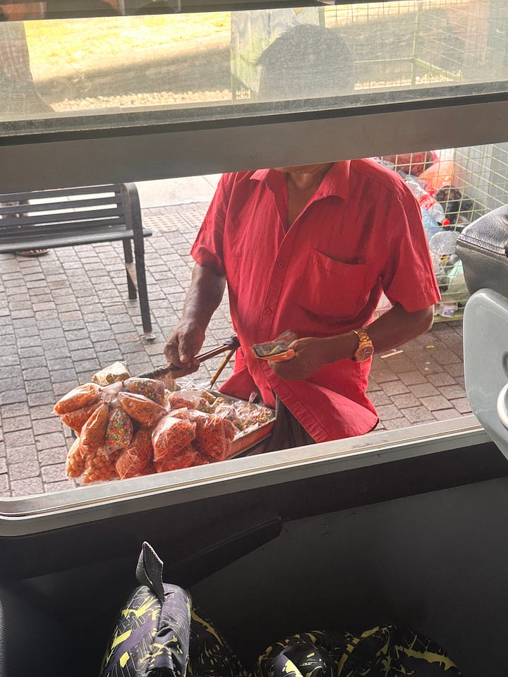 Was mir am meisten in Erinnerung geblieben ist von dieser Zugfahrt, sind die Verkäufer, die mit ihren Körben an den Fenstern vorbeiliefen oder in die Waggons kamen, um Süßigkeiten anzubieten. 🚃🍡