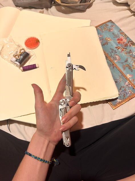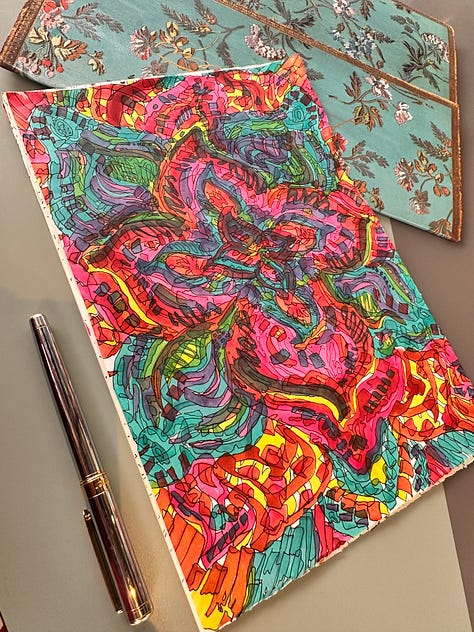 Also überlegte ich, griff in mein Krimskrams-Täschchen, nahm Nadel und Faden und begann, ein kleines Sketchbook zu nähen – aus ein paar Seiten meines großen Tagebuchs. Ich machte mich auf den Weg in ein Farbengeschäft und kaufte ein paar Farbmarker. Und in den nächsten Tagen merkte ich, wie schön es ist, mit diesem kleinen Buch Inspirationen festzuhalten. 🎨